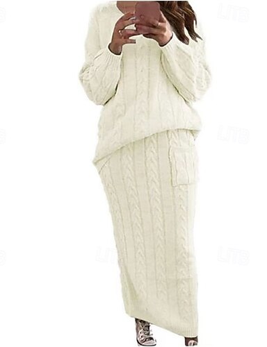 Per donna Caldo Moda Streetwear Set di gonne Bolero Top Manica Lunga Girocollo Tinta unica Patchwork All'aperto Vacanza Quotidiano Bianco Giallo Blu Autunno Vestibilità regolare