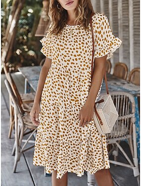 Per donna Abito al ginocchio Abito Boho Vestito Casual Abito Floreale Elegante Moda Moderno All'aperto Vacanza Uscire Vestibilità comoda Grafico Manica Corta Girocollo Nero Bianco Giallo Verde