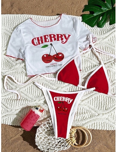 Per donna Costumi da bagno Bikini Tre Pezzi Perizoma Costume da bagno Snello Senza schiena Vacanza Abbigliamento da Spiaggia Lettera Girocollo Senza Maniche Maniche Corte Costumi da bagno