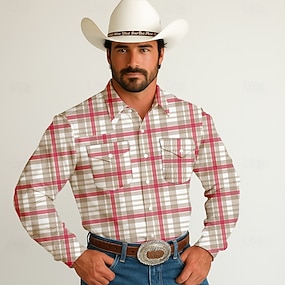 Per uomo Geometrico Motivi a griglia / plaid Camicia Western Camicia con Bottoni Camicia da cowboy Manica Lunga Western Vintage Retrò All'aperto Casuale Primavera Autunno Collo ripiegato camicie con