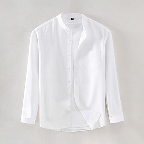 Per uomo Camicia Bianco Blu marino Kaki Manica Lunga Tinta unica Colletto Mao All'aperto Casual Arricciato Abbigliamento Quotidiano Casual Quotidiano Tempo libero