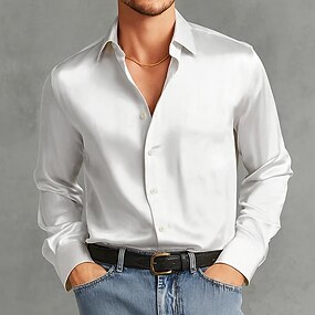 Per uomo Camicia Come la seta Camicia in raso Camicia elegante Camicia casual Camicia da Ballo Semplice Matrimonio Formale Nero Bianco Manica Lunga Scialle Primavera Tutte le stagioni Abbigliamento