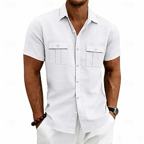 Per uomo Camicia camicia di lino Camicia estiva Abbigliamento mare Camicia hawaiana Camicia con bottoni Tinta unica Da mare Curise Nero Bianco Blu Grigio chiaro Manica corta Con colletto Primavera