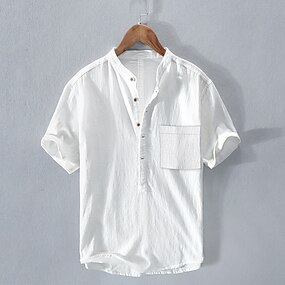 Per uomo Camicia di lino Camicia Estiva Abbigliamento da spiaggia Camicia casual Camicia con colletto alla coreana Tinta unica Casuale Quotidiano Nero Bianco Verde chiaro Blu Manica Corta Henley