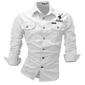 Per uomo Renna Cervo Camicia da lavoro Camicia Western Camicia cargo Manica Lunga Western Casual Uscire Caccia Primavera Autunno Collo ripiegato Stampato Nero Bianco Verde militare Rosso Blu
