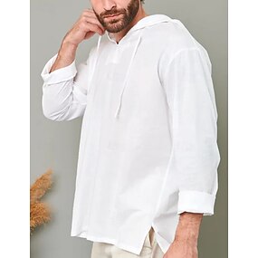 Per uomo Camicia Camicia di lino Camicia popover Camicia Estiva Abbigliamento da spiaggia Camicia con cappuccio Tinta unica Vacanza Streetwear Bianco Verde chiaro Blu Verde Manica Lunga Con Cappuccio