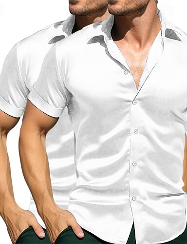 Per uomo Camicia Camicia in raso Camicia estiva Camicia con bottoni Maglietta informale Nero Bianco Blu Manica corta Tinta unica Bavero Giornaliero Da mare Abbigliamento Di tendenza Informale Comodo
