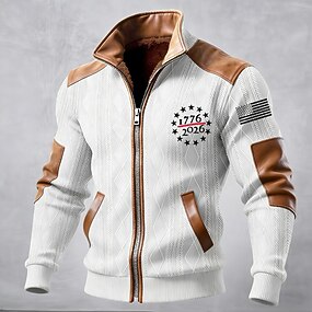 Per uomo Giacca in Ecopelle Giacca da Biker Giacca da Moto Vacanza Quotidiano Antivento Patchwork Tasca Primavera Autunno Semplice Moda Classico Collo alla coreana Regolare Nero Bianco Rosso Marrone
