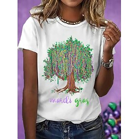 Carnevale Martedì grasso Per donna Maglietta Stampato Grafico Astratto Elegante Classico Casual Manica Corta Girocollo Top Regolari Quotidiano Sportivo Uscire Bianco Estate Primavera