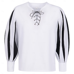 Medievale Rinascimento 17° secolo Blusa / Camicia Pirata Cavaliere Vichingo Cavaliere Celtico Coulisse Costume Per uomo Costumi da pirata Halloween Mascherata Casual Quotidiano LARP Fiera