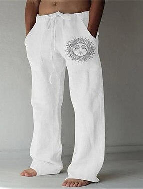 Per uomo Pantaloni di Lino Pantaloni Pantaloni Estivi Pantaloni da Spiaggia Stampato Gamba Dritta Grafico Sole Morbido All'aperto Lunghezza intera Casa Casuale Quotidiano Moda Streetwear Bianco Blu