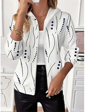Per donna Giacca Casual Impermeabile Confortevole Tasca Casual Semplice Vacanza Streetwear Casuale Abbigliamento quotidiano Lungo Con Cappuccio Vestibilità comoda Manica Lunga Capispalla Nero Bianco