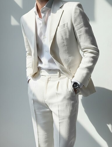 Uomo Completi in Lino Abiti da lavoro Casuale Matrimonio Bianco Rosa Primavera & Estate Tuta Bavero classico Moda Quotidiano Tinta unita Vestibilità su misura 2 pezzi Monopetto Due Bottoni