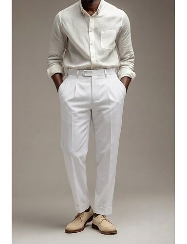 Uomo Cotone Lino Pantaloni Eleganti Pantaloni casual Quotidiano Affari Moda Casual Bianco Blu marino scuro Verde salvia Tinta unica Vestibilità regolare Lungo Inelastico