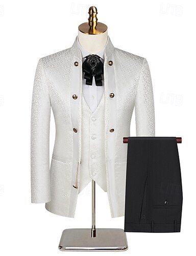 Uomo Smoking Abiti da festa Matrimonio Natale Nero Bianco Primavera Tuta Bavero sciallato Formale Jacquard Floreale Vestibilità aderente 3 pezzi Monopetto a un bottone