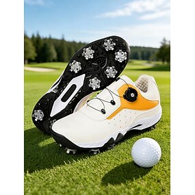 scarpe da golf classiche da donna bianche/gialle con lacci – scarpe da ginnastica sportive antiscivolo e ammortizzanti per giocatrici di golf, allenamento sul campo, partite del fine settimana, stile country club e passeggiate all'aperto