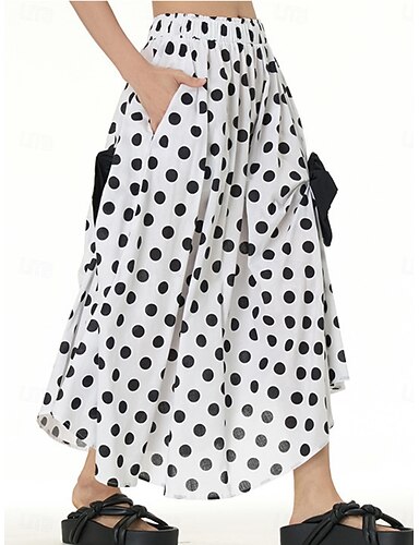 Per donna Gonna Linea A Moda Casual Maxi Vita Alta Gonne A Pois Tasca Elasticizzato Streetwear Quotidiano Bianco e nero Nero / Bianco Nero Bianco Primavera Cotone