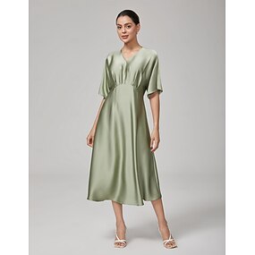 abito midi da donna con pieghe inverse, scollo a V, maniche dolman, elegante, casual, quotidiano, primavera estate autunno