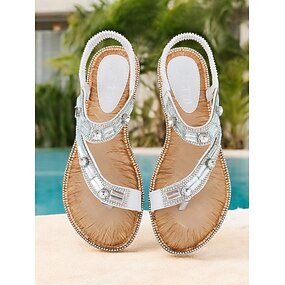 sandali da donna con cinturino a T impreziositi da strass turchesi – sandali bassi elastici con cinturino posteriore in stile bohémien per la spiaggia estiva e l'abbigliamento casual