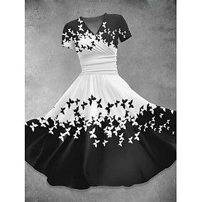 Abito midi elegante da donna per feste serali con scollo tondo e maniche corte abito estivo stile casual vestibilità regolare grafica animale gatto bianca rossa blu estate primavera