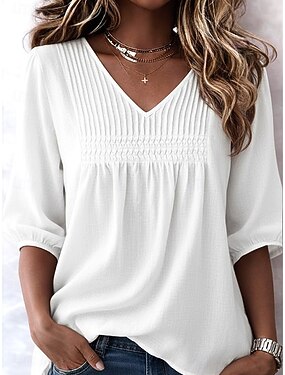 Per donna Camicia Boho Tunica Patchwork Tinta unica Elegante Quotidiano Casual Manica 3/4 Scollo a V Top Regolari Quotidiano Lavoro Ferie Blu Verde primavera Nero Bianco Rosso Primavera, Autunno