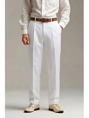 Uomo Cotone Lino Pantaloni Eleganti Pantaloni casual Abbigliamento casual alla moda Affari Elegante Formale Casual Bianco Rosa Beige Tinta unica Vestibilità su misura Lungo Inelastico