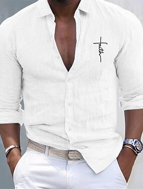 Per uomo Camicia Camicia bianca di cotone Camicia casual Camicia di cotone Croce Vacanza Camicia hawaiana Nero Bianco Rosa Grigio Manica Lunga Bavero Primavera & Autunno Abbigliamento Bottonato