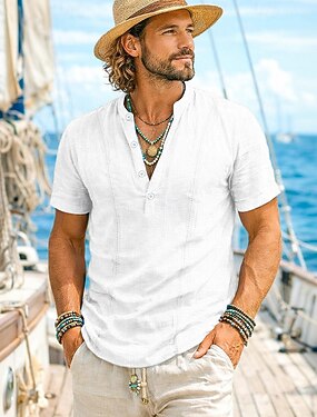 Per uomo Camicia Camicia di lino Camicia popover Camicia Estiva Abbigliamento da spiaggia Camicia con colletto alla coreana Semplice Vacanza Casuale Nero Bianco Rosa Verde Manica Corta Henley Estate