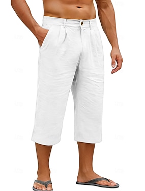 Per uomo Pantaloni di Lino Pantaloni capri Pantaloni Estivi Tasca Elastico in vita Semplice Comodità Traspirante Lunghezza al polpaccio Quotidiano All'aperto Ferie Moda Stile Classico Blu Cáqui Escuro