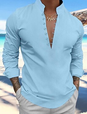 Per uomo Camicia Camicia di lino Camicia in cotone e lino Camicia con colletto cinese Camicia con colletto alla coreana Camicia casual Semplice Vacanza Camicia hawaiana Bianco Blu marino Cachi Azzurro