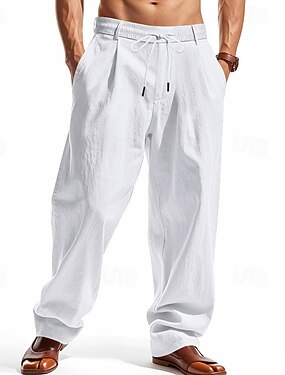 Per uomo Pantaloni di Lino Pantaloni Pantaloni Estivi Coulisse Elastico in vita Semplice Comodità Traspirante Casuale Quotidiano Ferie Moda Stile Classico Nero Bianco