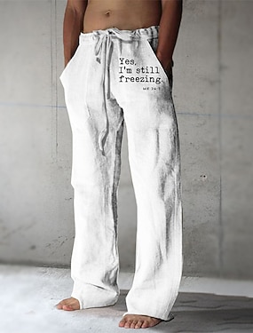 Per uomo Pop art Alfabetico Pantaloni di lino Pantaloni Vita normale Informale Da tutti i giorni Da mare Per uscire Primavera Autunno Nero Bianco Verde