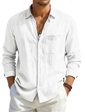 Per uomo Camicia Camicia di lino Camicia Estiva Abbigliamento da spiaggia Camicia casual Camicia con Bottoni Semplice Vacanza Casuale Nero Bianco Rosa Blu Manica Lunga Bavero Primavera & Estate