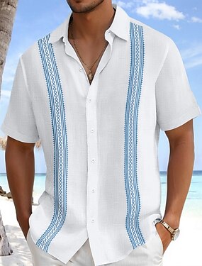 Per uomo Camicia di lino Camicia Guayabera Abbigliamento da spiaggia Camicia con Bottoni Testurizzato Vacanza Casuale Bianco Blu Verde Grigio Manica Corta Collo ripiegato Estate Primavera