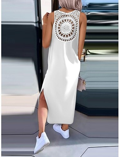 Per donna Abito maxi Abito a trapezio Casual Quotidiano Vestibilità regolare Floreale Grafico Stella Senza Maniche Scollo a V Collo a U Bianco Estate Primavera