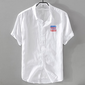 Per uomo camicia di lino Camicia estiva Abbigliamento mare Maglietta informale Camicia con bottoni Liscio Da mare Curise Nero Bianco Rosa Blu Manica corta Bavero Primavera estate Abbigliamento Tasca