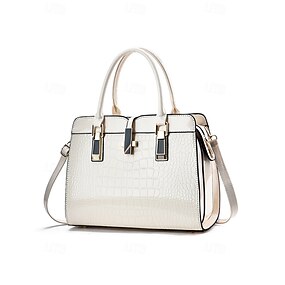 Borsa a mano da donna in similpelle verniciata color bordeaux - borsa tote strutturata con stampa coccodrillo, manico superiore e tracolla, perfetta come regalo per la festa della mamma, ufficio, lavoro e occasioni formali