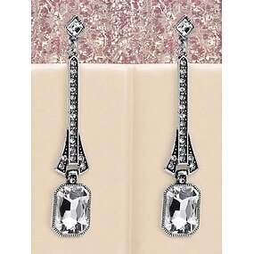 orecchini pendenti Gatsby anni '20 da donna - orecchini pendenti lunghi in stile art déco con pietre preziose blu e strass per le feste dei ruggenti anni Venti