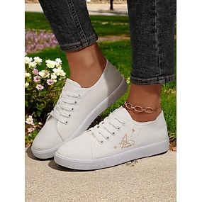scarpe da ginnastica bianche flessibili in tela da donna – scarpe leggere pieghevoli con lacci per viaggi, passeggiate e abbigliamento casual