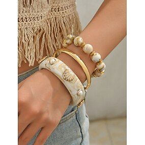Set di braccialetti in lega acrilica da donna, braccialetti alla moda multicolore e gioielli impilabili con perline, accessori da polso casual in stile boho resort per vacanze, viaggi in spiaggia, uso quotidiano e occasioni di svago