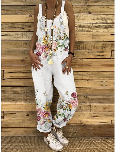 tuta intera da donna stampa floreale girocollo vita da trug streetwear quotidiano per le vacanze vestibilità ampia senza maniche bianco rosa rosso s m l estate autunno