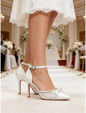 décolleté da sposa con cinturino alla caviglia e fiocco in raso da donna – tacchi a spillo a punta per matrimoni formali