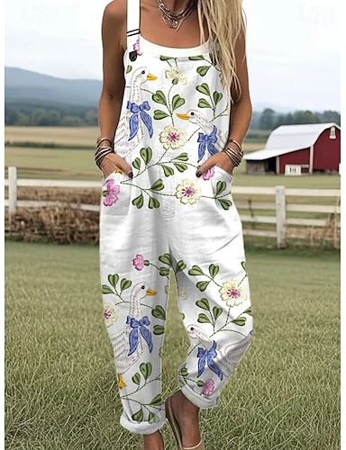 tuta intera da donna stampa floreale girocollo vita da trug streetwear quotidiano per le vacanze vestibilità ampia senza maniche bianco rosa rosso s m l estate autunno