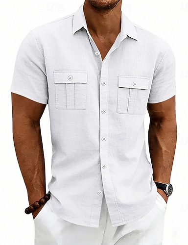 Per uomo Camicia Camicia di lino Camicia Estiva Camicia da Spiaggia Semplice All'aperto Vacanza Nero Bianco Blu marino Cachi Manica Corta Collo ripiegato Estate Primavera Abbigliamento Tasca
