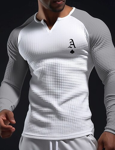 Maglietta Henley da uomo con asso di picche, vestibilità slim, testurizzata, a maniche lunghe, con grafica a nido d'ape e maniche raglan, casual, da palestra, per tutti i giorni, abbigliamento
