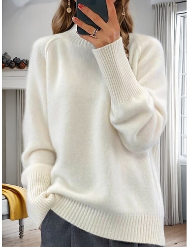 Per donna Felpa Pullover Maglione Giornaliero Informale Morbido Colore puro A collo alto Lavorato a maglia Manica corta Manica lunga Top regolari Maglia Interni Giornaliero Per eventi Bianco Verde