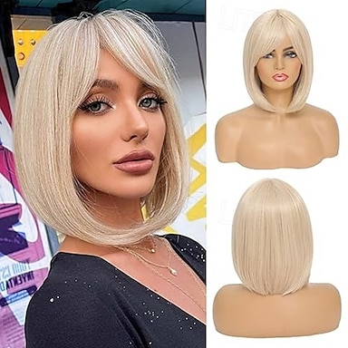 parrucca bob con frangia parrucche per donna parrucca corta dall'aspetto naturale con frangia super morbida &parrucca bob liscia facile da indossare parrucca sintetica resistente al calore con frangia