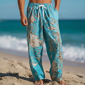 Per uomo Oceano Paesaggio Mare Pantaloni Pantaloni Larghi Pantaloni casual Misura del girovita medio Hawaiano All'aperto Vacanza Abbigliamento mare Coulisse elastica in vita Pantaloni tipo lino con