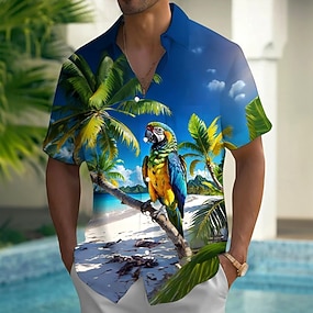 Per uomo Uccello Pappagallo Piante Tropicali Camicia hawaiana estiva Camicia con Bottoni Camicia Aloha Manica Corta Hawaiano Casuale Vacanza Estate Primavera Collo ripiegato Stampa 3D camicie con