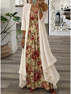 Per donna Abito maxi Set di vestiti Abito a trapezio Vacanza Boho Spiaggia Vestibilità regolare Floreale Grafico Manica 3/4 Scollo a V Blu Rosa Verde Beige Estate Primavera Autunno Inverno